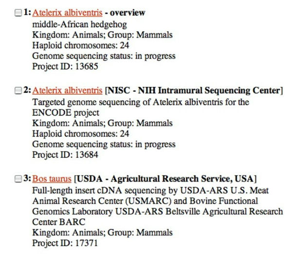 В этом эксперименте вы будете использовать онлайн-базу данных биоинформатики, чтобы узнать, какие животные в настоящее время имеют проекты генома, какие проекты завершены, а какие проекты все еще находятся в стадии разработки.