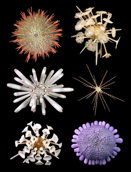 Фотография шести морских ежей демонстрирует нам разнообразие